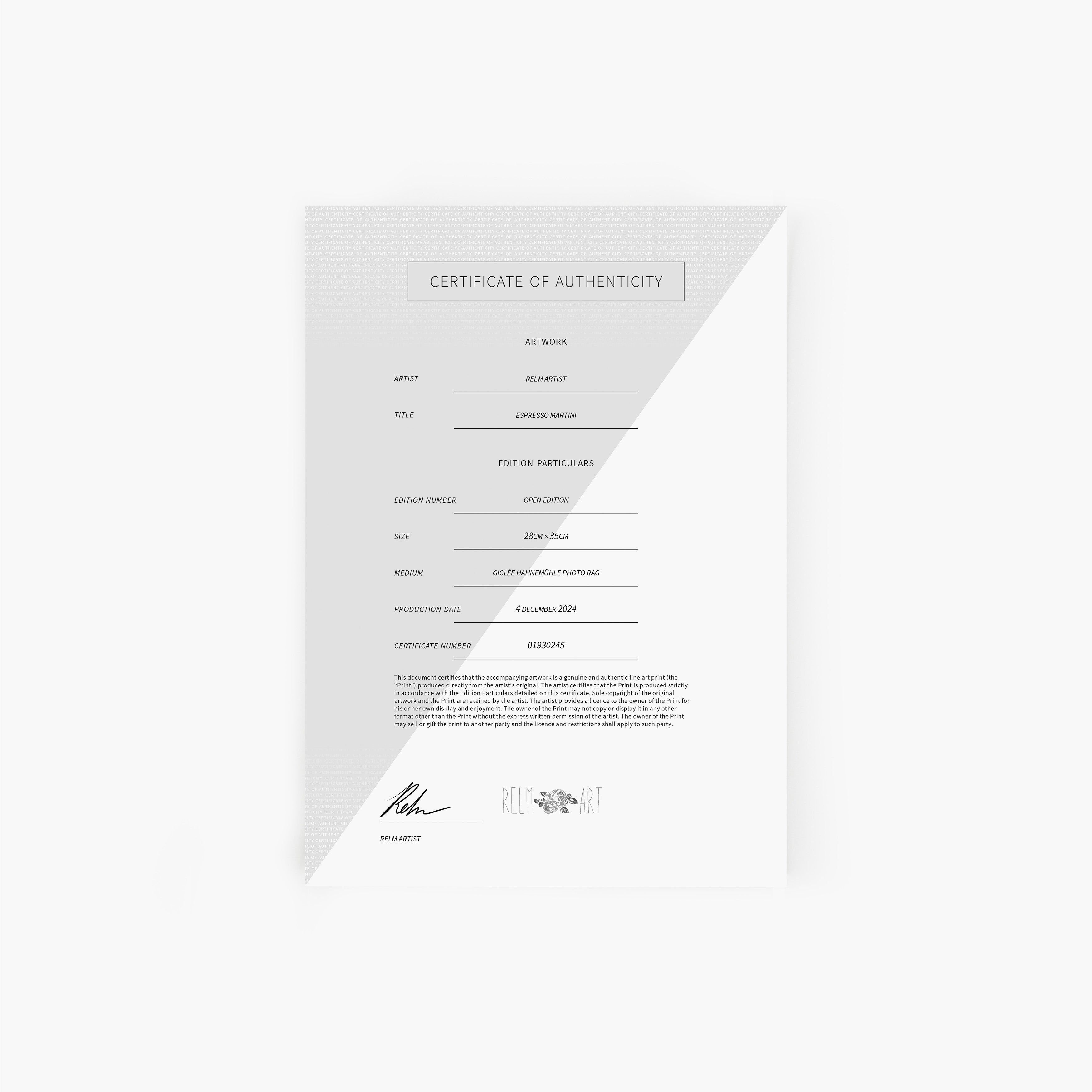 - Presented on acid-free, archival cotton Photo Rag Giclée paper
